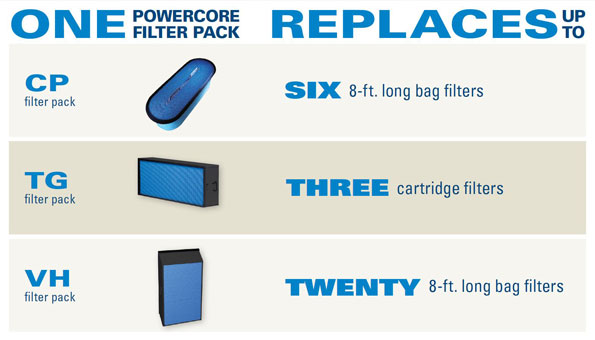 Torit PowerCore 過濾元件可以替換大部分型號的濾筒及濾袋;